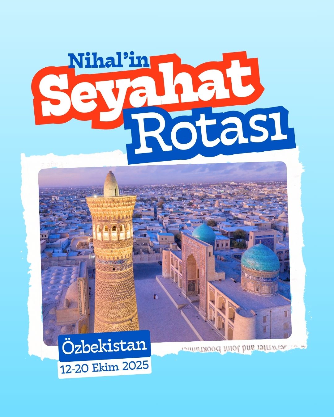 Nihalle Gezi Tur ile ÖZBEKİSTAN & KAZAKİSTAN TURU'na çıkıyoruz! İpekyolu'nun kalbinde, tarihi ve kültürel zenginliklerle dolu 9 gün 8 gece sürecek vizesiz bir macera sizi bekliyor. Fethiye çıkışlı SunExpress direkt uçuşuyla konforlu bir yolculukla Hive'den Semerkant'a, Buhara'dan Taşkent'e ve Kazakistan'ın Türkistan şehrine uzanıyoruz.